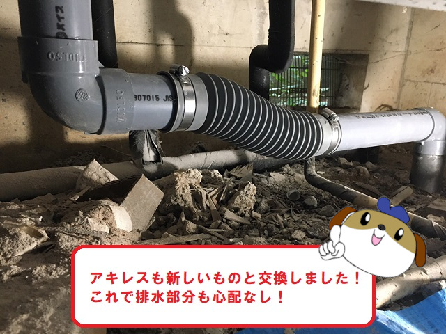 先程確認した床下の排水管、排水トラップも新しくしました!