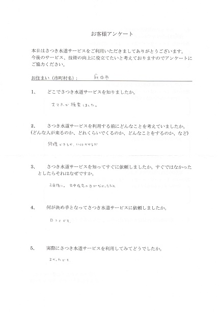 - Q.実際にさつき水道サービスを利用してみてどうでしたか