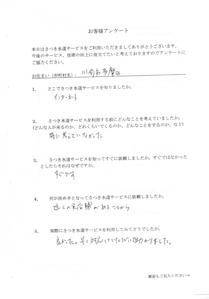 - Q.何が決め手となってさつき水道サービスに依頼しましたか
