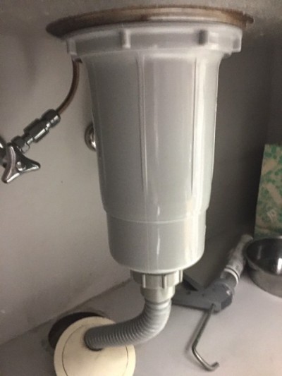 (水切り用のスペースがあるシンクでした。そのスペースに溜まった水を排水トラップへ流すためのホースです!)