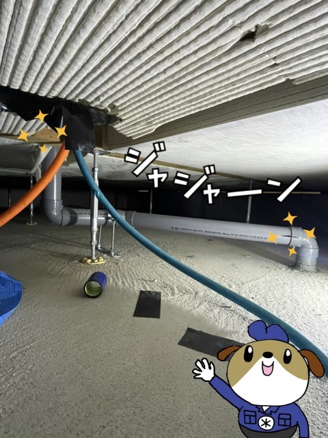 床下に入っているパイプがものすごく上下に動くので、気になって床下に入ってみました。
